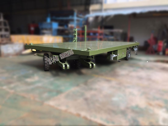 3.前后輪均帶彈簧減震機(jī)構(gòu),左右各配一套工具箱,車尾配活動(dòng)梯子一套,車四周配集裝箱角鎖及機(jī)械支腿一套(按雙方確認(rèn)的方案圖生產(chǎn));